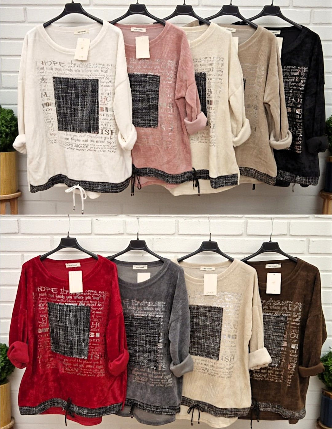 ✨ Damen Shirt mit Print & Kontrastdetails – Gr. 36–42
