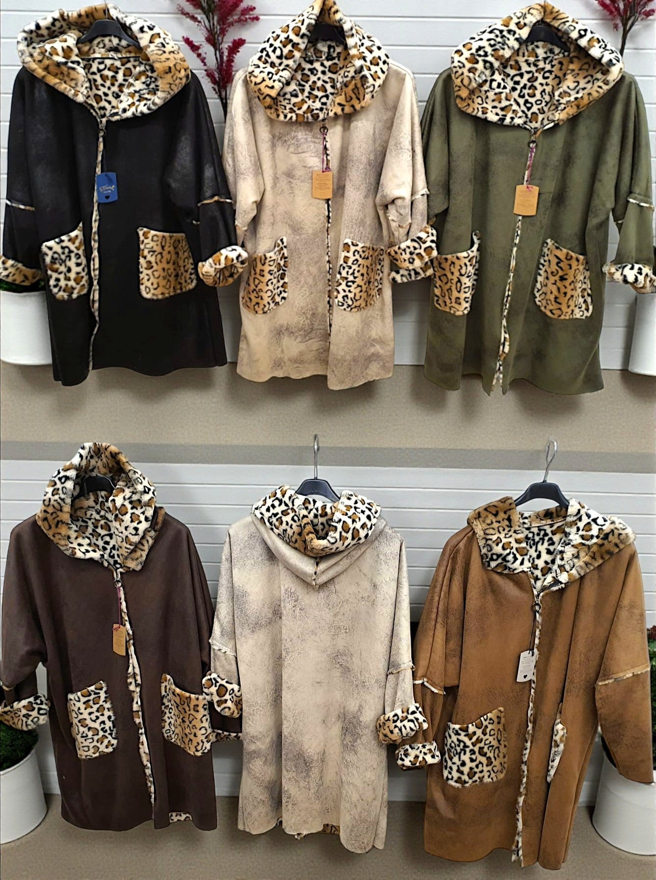 ✨ Kurzmantel mit Leo-Futter – One Size (42–48) – in 6 Farben ✨