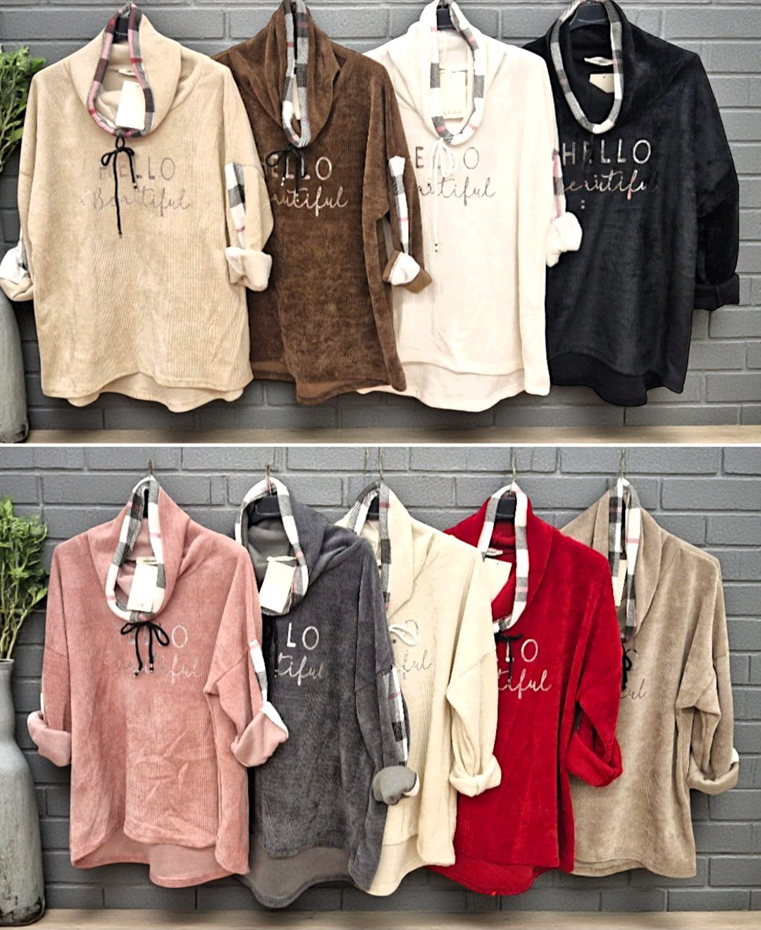 Kuschel dich stilvoll in diesen weichen Fleece-Pullover „Hello Beautiful“ – dein neues Lieblingsstück für gemütliche Tage!