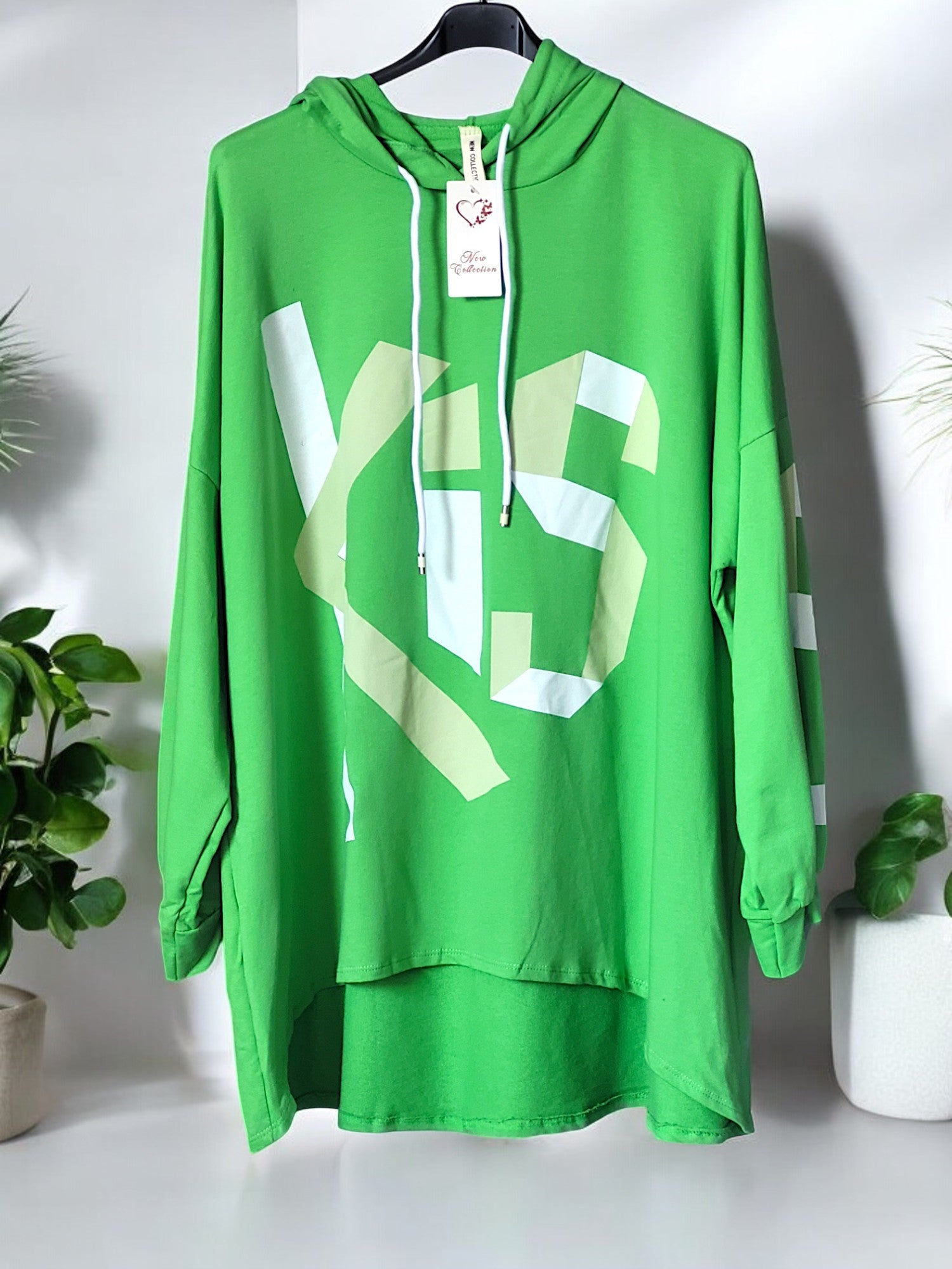 Die vielseitige Kombinierbarkeit macht dieses Shirt zum absoluten Must-have in deinem Kleiderschrank. Trage es mit Jeans für einen lässigen Freizeitlook oder kombiniere es mit Jogginghosen für einen entspannten Tag zu Hause. Mit dem Kapuzen Langarmshirt "Kiss" bist du immer trendig und bequem gekleidet.