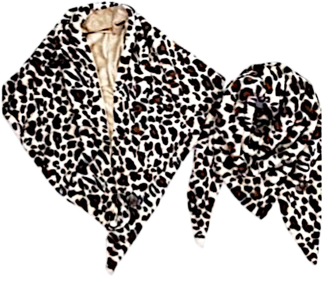Kuschelweicher, zweiseitiger Dreieckschal mit Fell creme 'Leos spots'