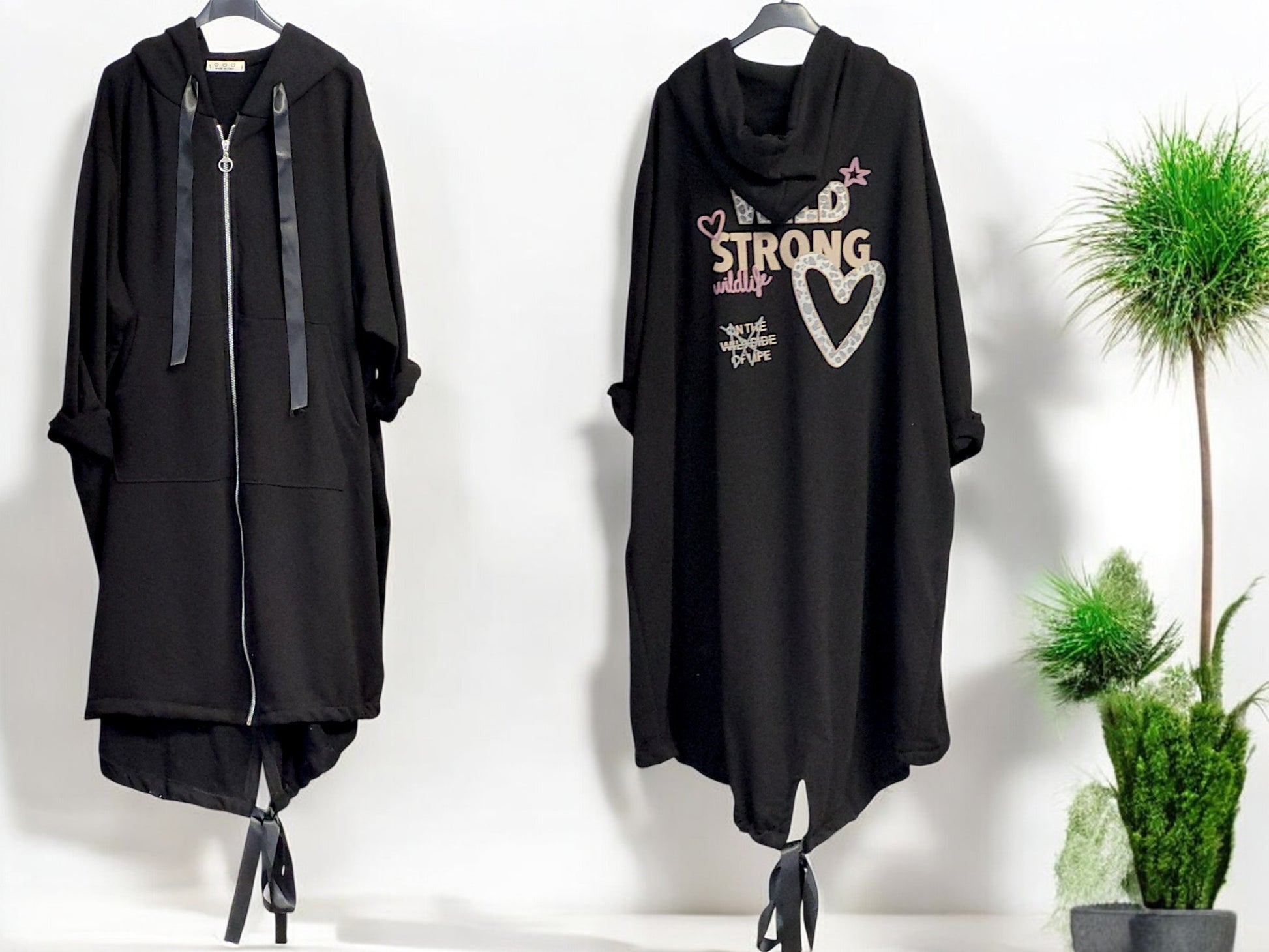 Mit seinem sportlich-modernen Design ist der Sweatmantel "WILD STRONG" vielseitig kombinierbar. Ob beim Sport, beim Spaziergang im Park oder einfach beim Entspannen zu Hause - dieser Mantel ist immer die richtige Wahl.